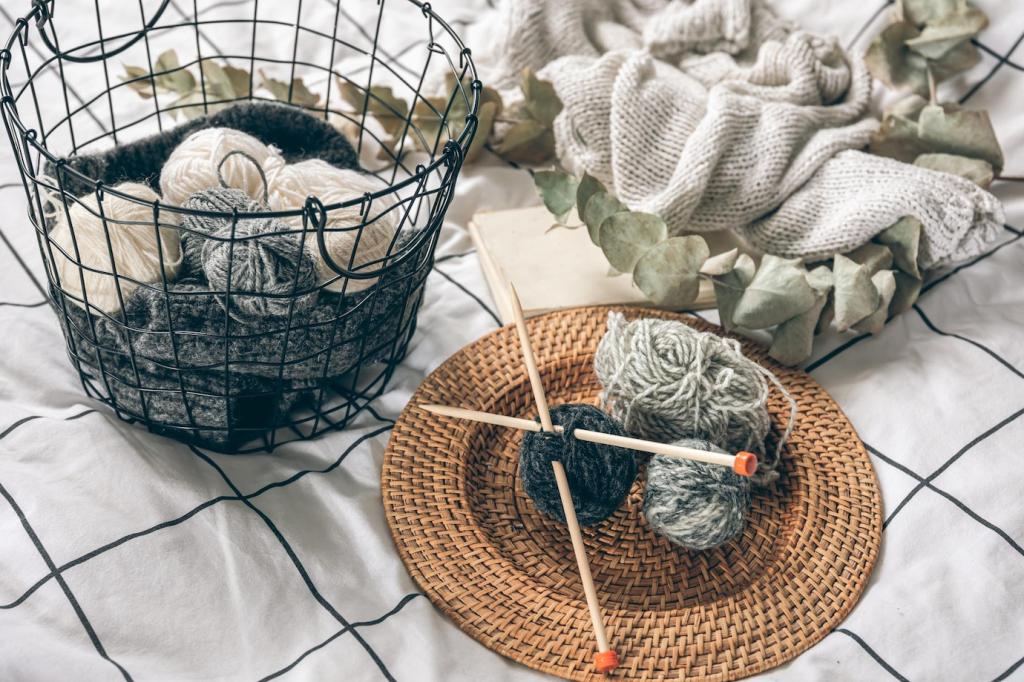 Unter dem Bett, über der Tür, hinter der Sofalehne – kleine Nischen werden zu nachhaltigen Stauraumwundern. Stoffboxen aus recycelten Fasern halten Ordnung. Teile deinen besten Geheimplatz-Trick für kleine Wohnungen.